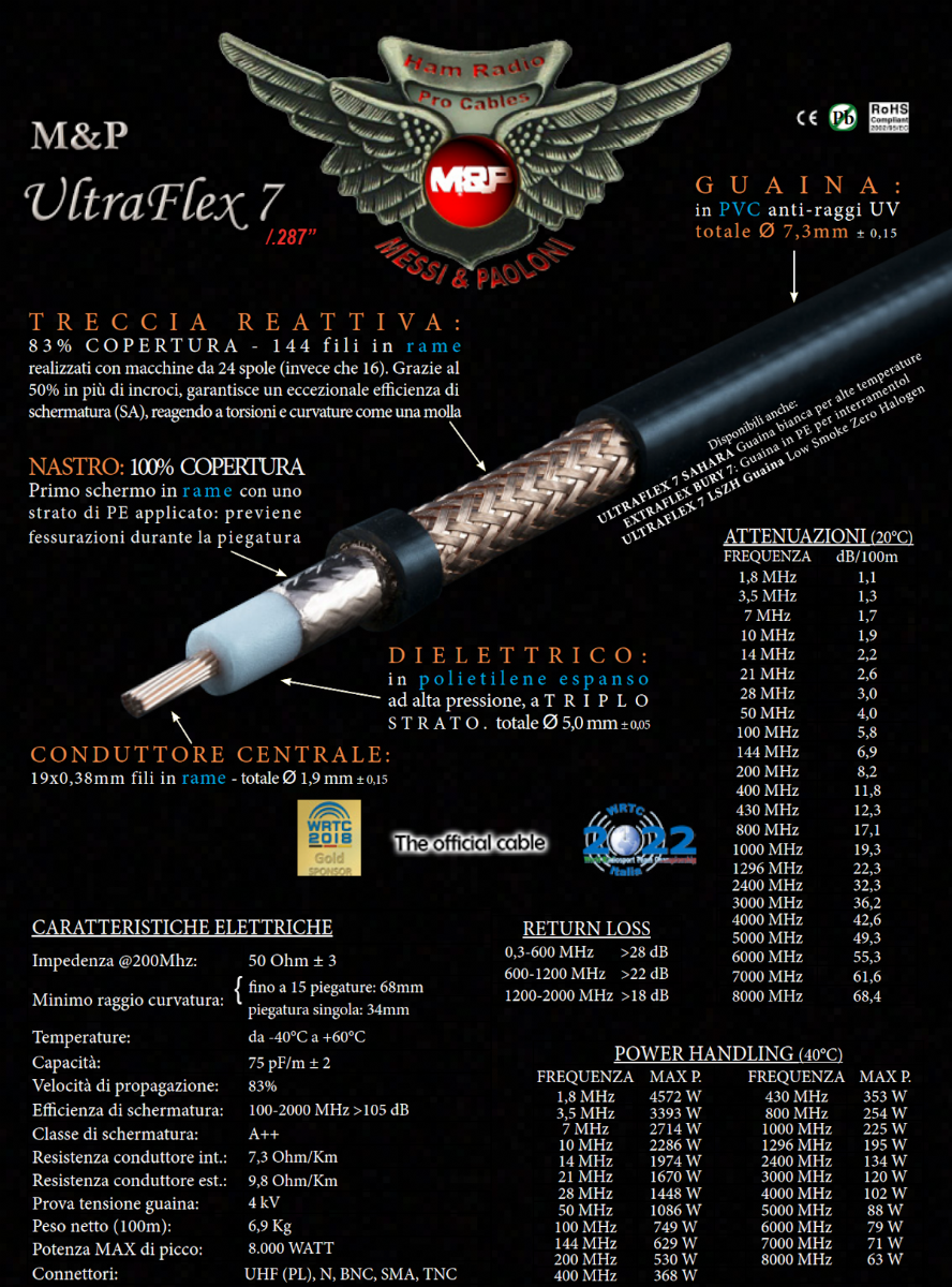 Nonostante le sue dimensioni limitate (7,3 mm) le sue prestazioni sono così elevate da surclassare l´RG 213 U (10,3 mm) e mettere in ombra i pochi cavi concorrenti di pari diametro.
