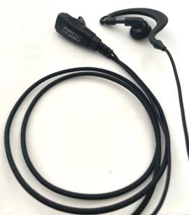 Auricolare con supporto orecchio regolabile verticalmente e ruotabile di 360° in soffice gomma siliconica, microfono da cravatta con comodo pulsante PTT e fermaglio in metallo orientabile a 360°