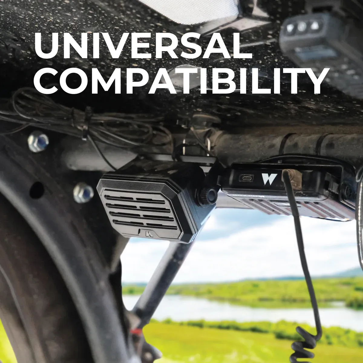 Collegato a un CB Midland con funzione PA (come Quarantotto e M5 PRO), AU28 EXTREME diventa un vero e proprio megafono esterno: parli nel microfono e la tua voce esce dall’altoparlante, utile per dare istruzioni immediate agli operatori sul campo, senza dover scendere dal mezzo.